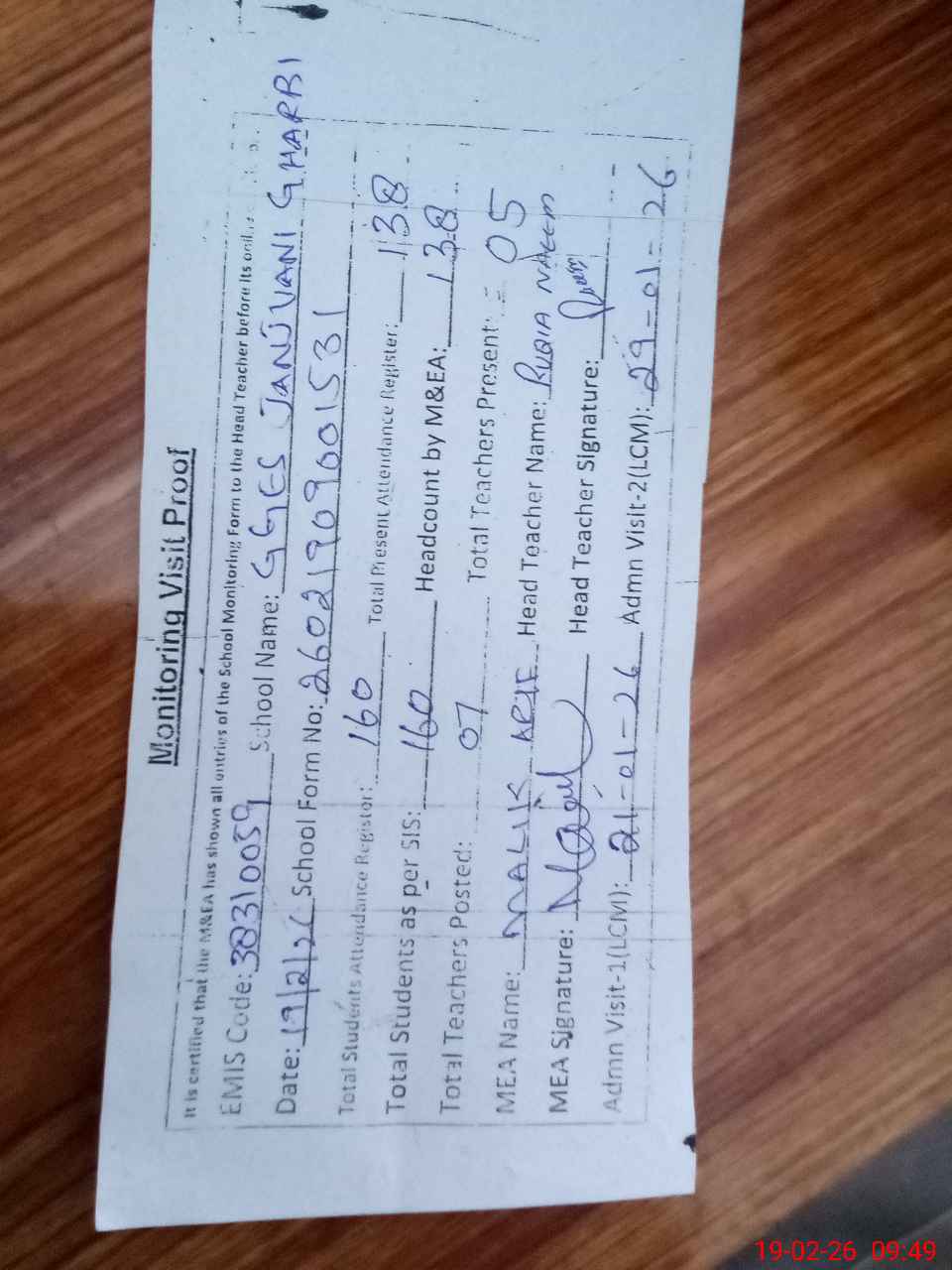 | EMIS Code: 38310059 | Name of School: GGES JANJVANI GHARBI | |||