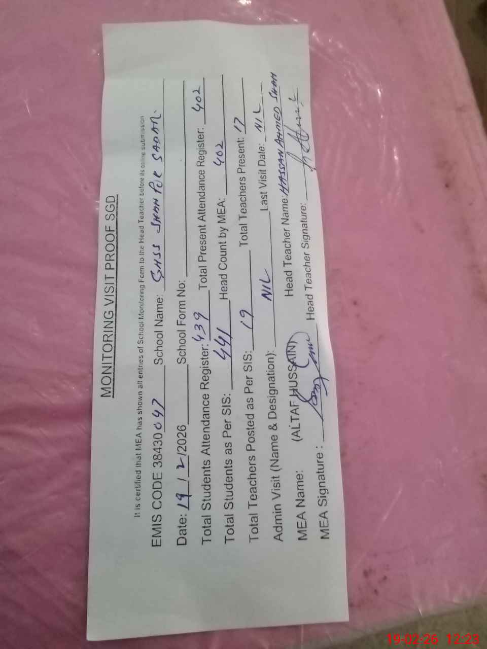 | EMIS Code: 38430047 | Name of School: GHSS SHAHPUR SADAR | |||