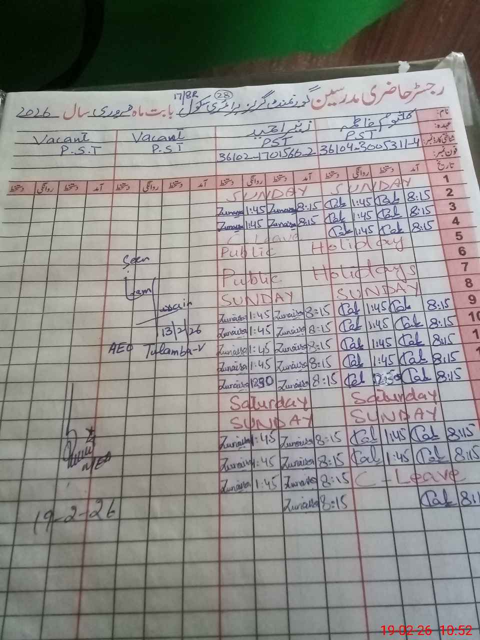 | Name: KA**** FA**** Designation: (School Headmaster's/Headmistress's) PST Phone/Cell Number: 03**** |