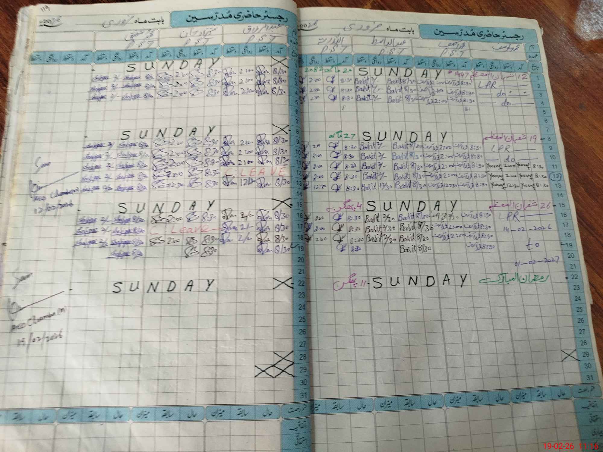| Leave | Duty | Absent | Maternity | Medical | Ex- Pak |