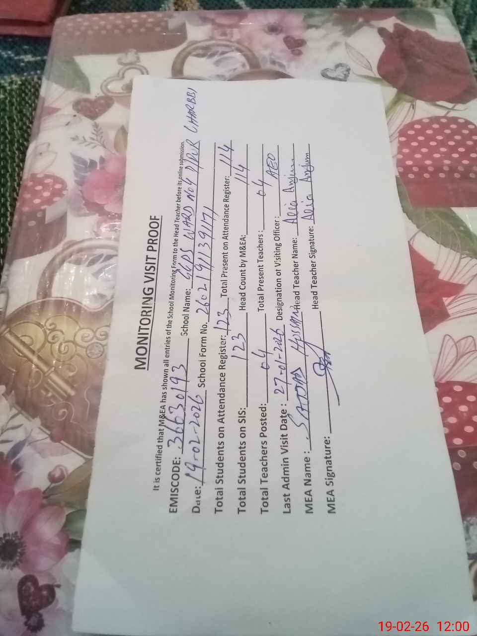 | Certified that this School was Inspected by the Undersigned MEA/DMO Today and the Information Stated Above is as Per Record. | |||||