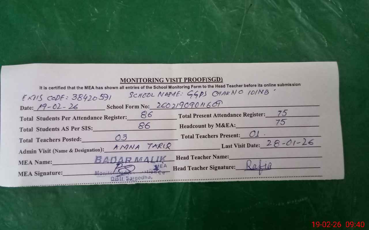 | EMIS Code: 38420591 | Name of School: GGPS CHAK NO.101 NB NEW ABADI | |||