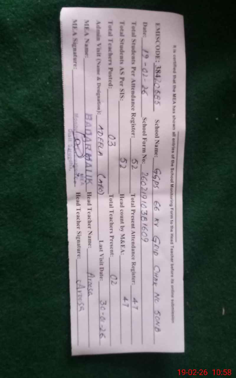 | EMIS Code: 38420585 | Name of School: GGPS 66 KV GRID CHAK NO.50 NB | |||
