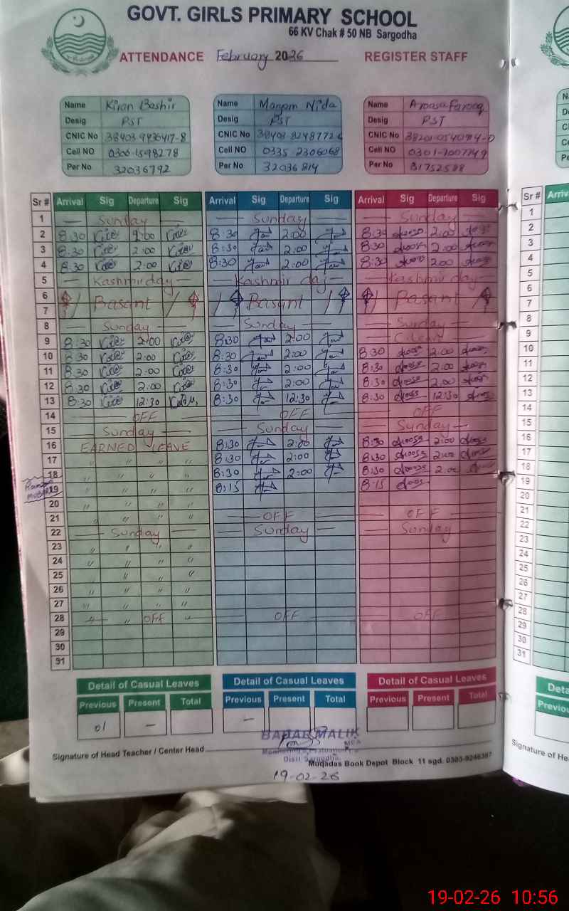| Name: Ar**** Fa**** Designation: (School Headmaster's/Headmistress's) PST Phone/Cell Number: 03**** |