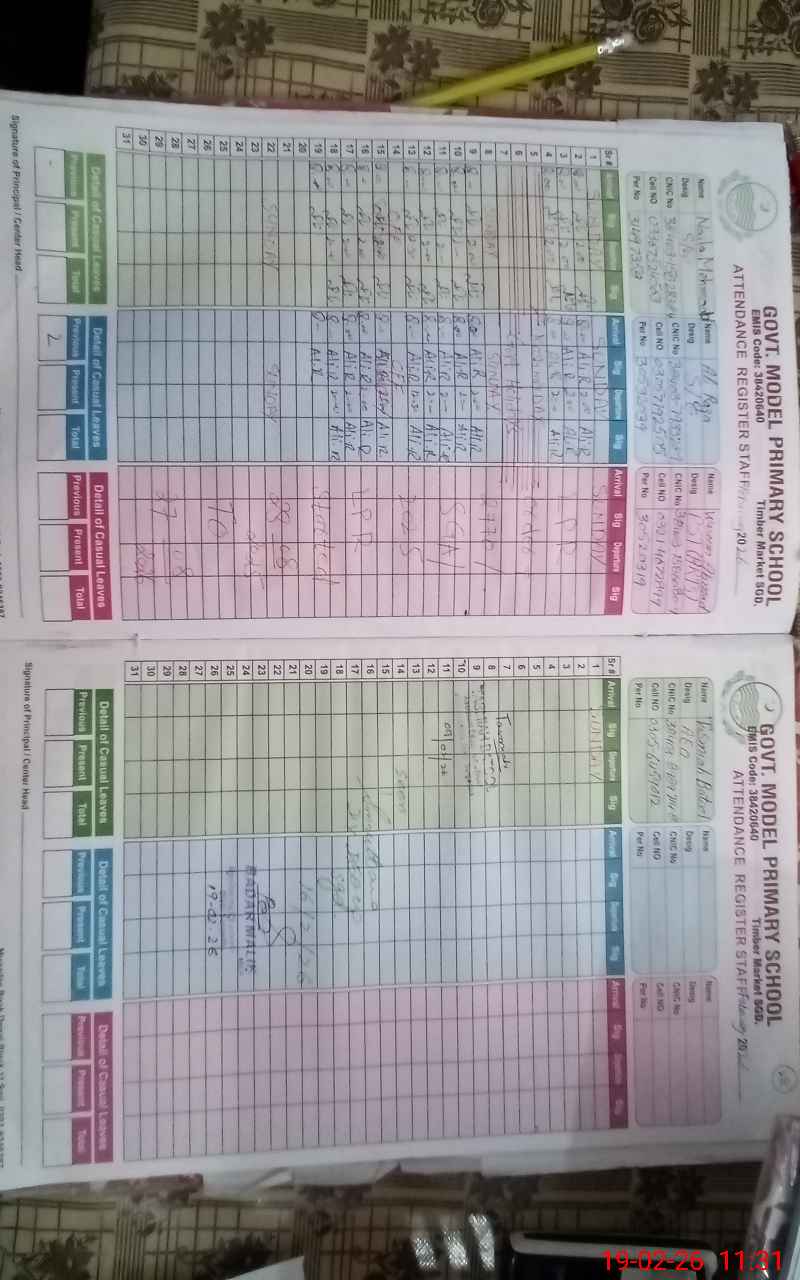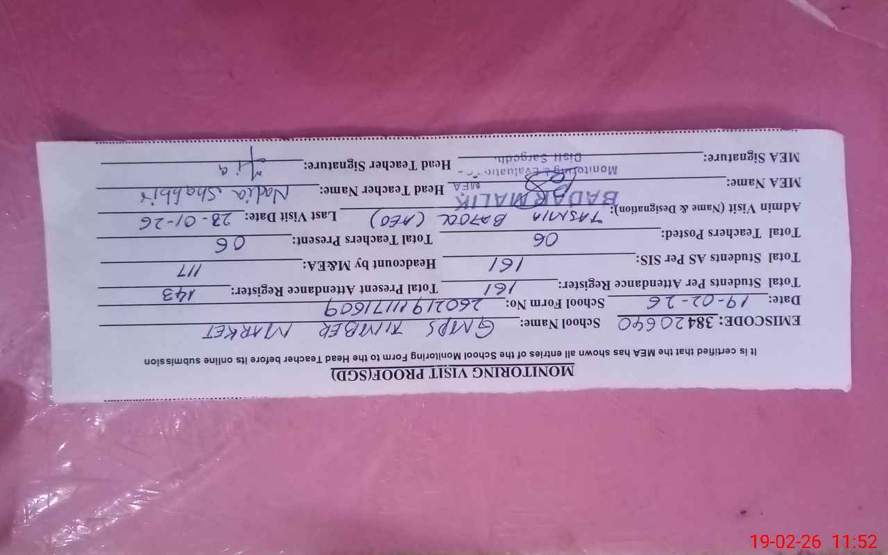 | Remarks (Use Separate Page if Required): 02 toilets are non functional due to severge system down SG Ali Raza marked absent he was not physically present in school. | |||||