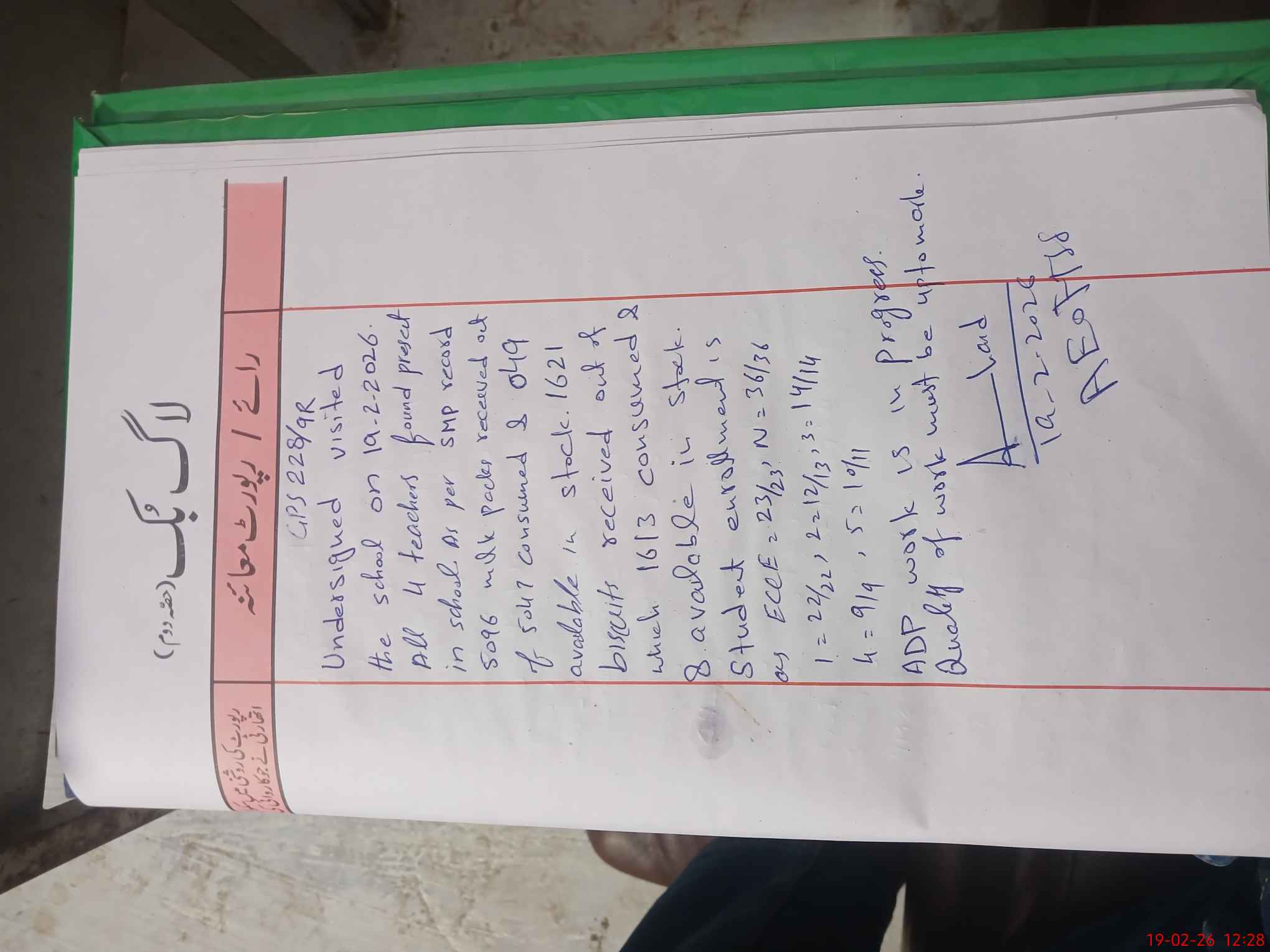 | Certified that this School was Inspected by the Undersigned MEA/DMO Today and the Information Stated Above is as Per Record. | |||||