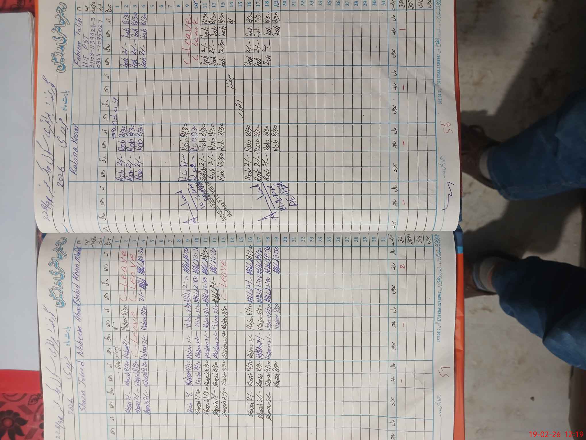 | CNIC | Full Name | Designation | R/C | Absence During Last Calender Month |
