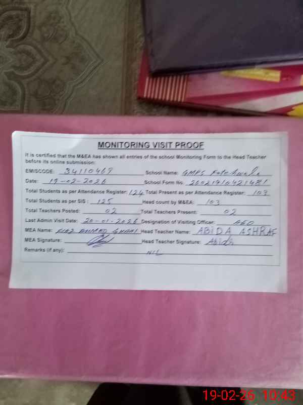 | EMIS Code: 34110469 | Name of School: GMPS FATEH WALA | |||