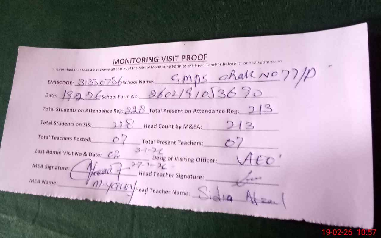 | EMIS Code: 31330736 | Name of School: GMPS CHAK 77/P | |||