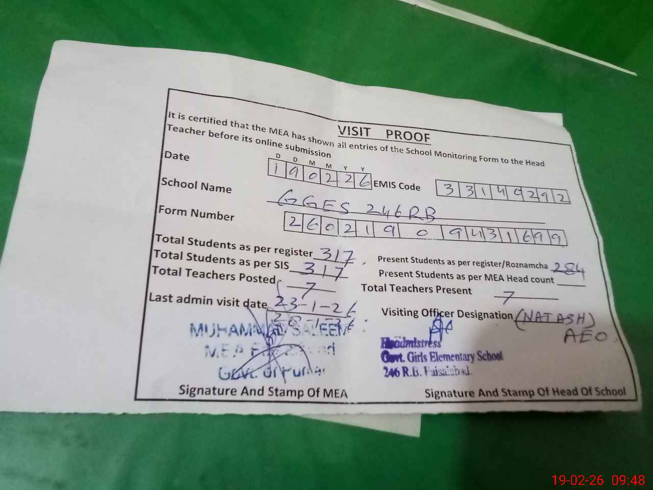 | EMIS Code: 33140292 | Name of School: GGES CHAK 246 RB I | |||