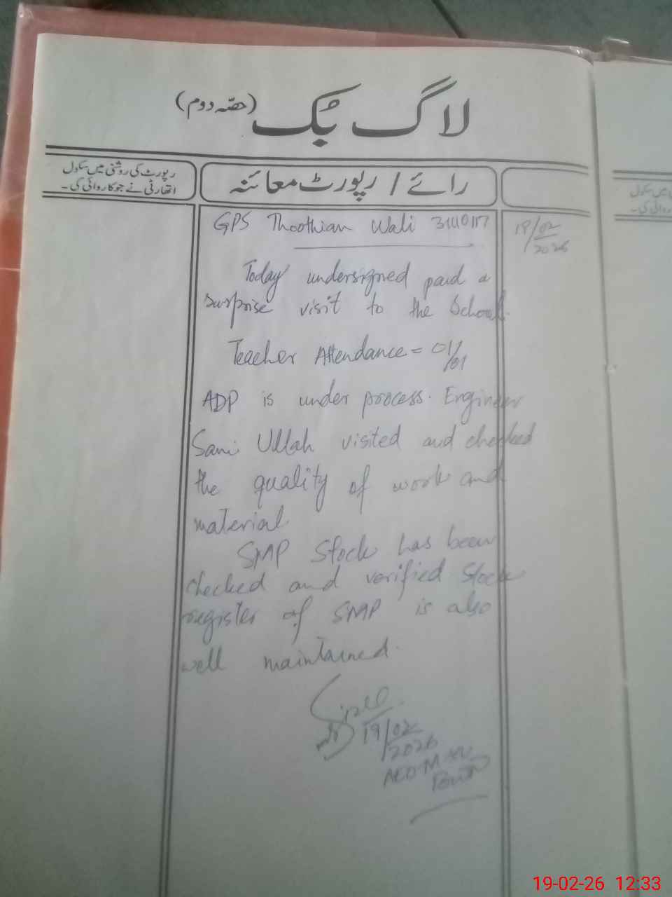 | Certified that this School was Inspected by the Undersigned MEA/DMO Today and the Information Stated Above is as Per Record. | |||||
