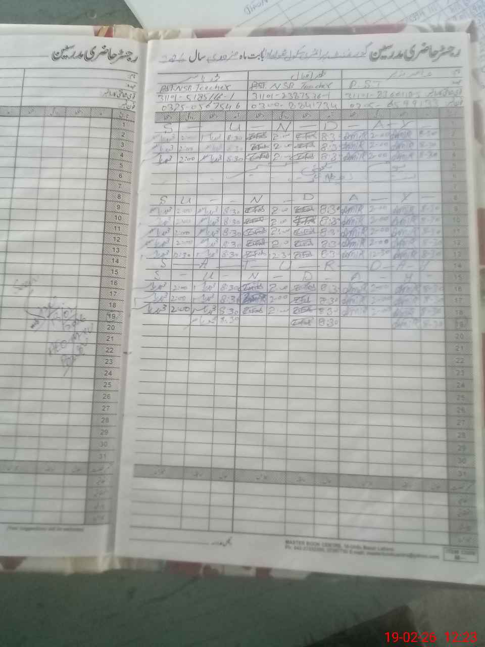 | CNIC | Full Name | Designation | R/C | Absence During Last Calender Month |