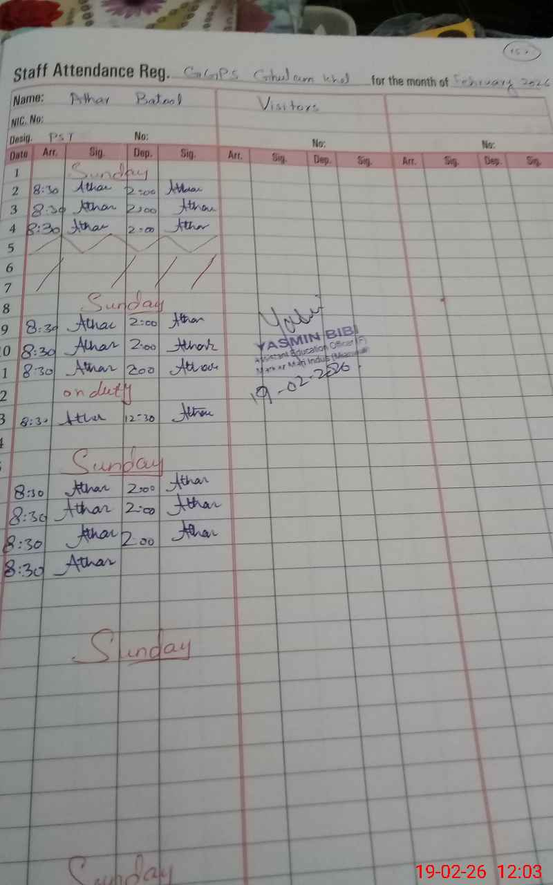 | Name: Ur**** Fa**** Designation: (School Headmaster's/Headmistress's) PST Phone/Cell Number: 03**** |