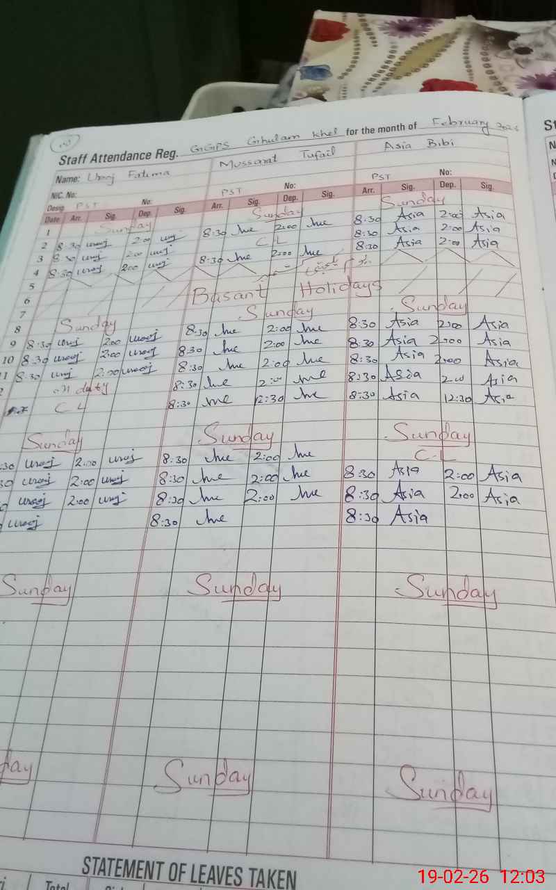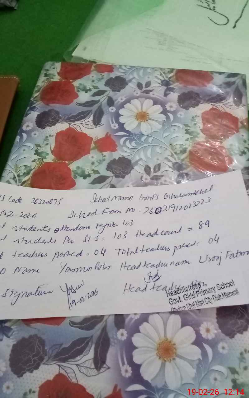 | EMIS Code: 38320875 | Name of School: GGPS GHULAM KHEL | |||