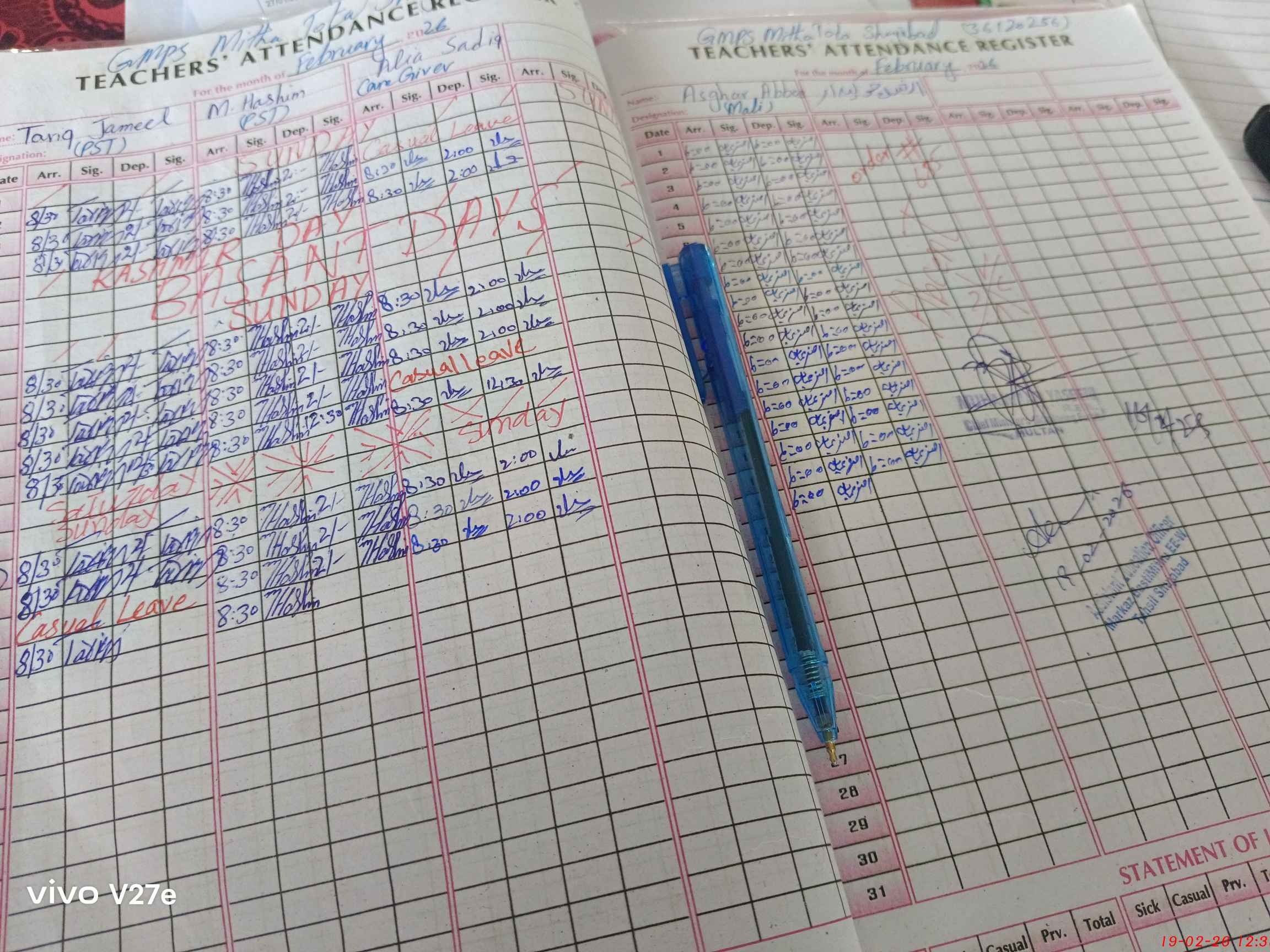 | Attendance Register | Head Teacher | MEA with School | Visit Proof |