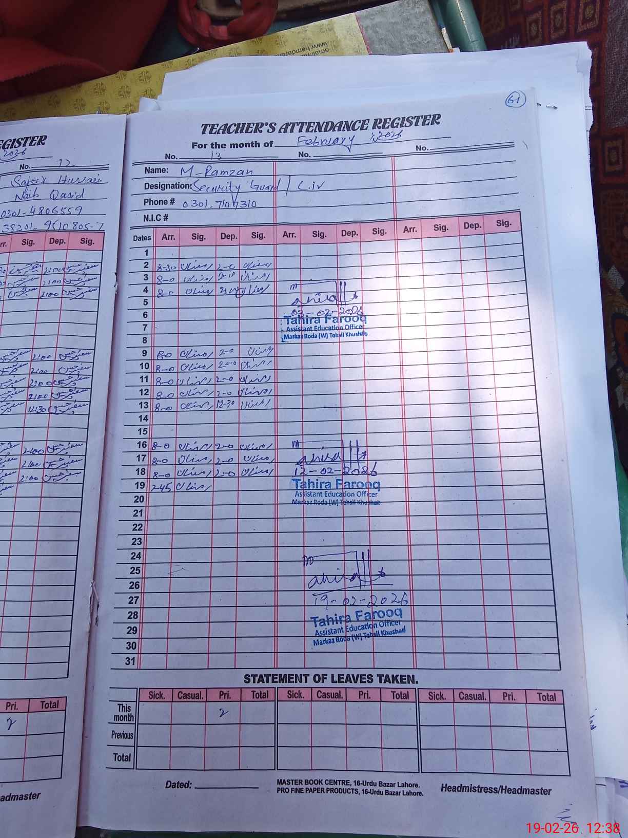 | Name: Za**** Pe**** Designation: (School Headmaster's/Headmistress's) Sst Gen Phone/Cell Number: 03**** |