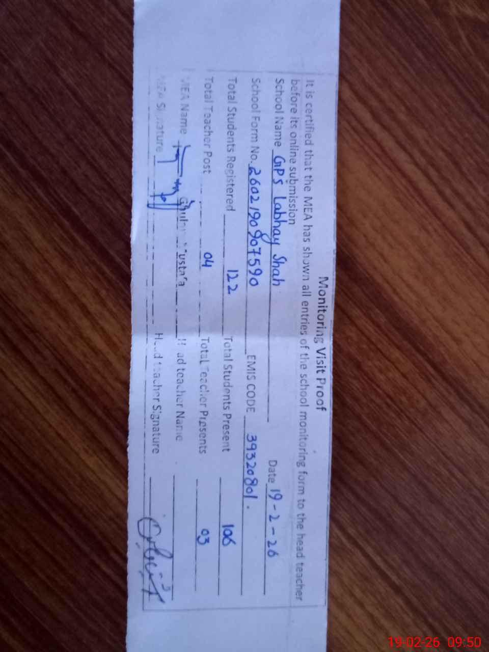 | EMIS Code: 39320801 | Name of School: GPS LABHAY SHAH | |||