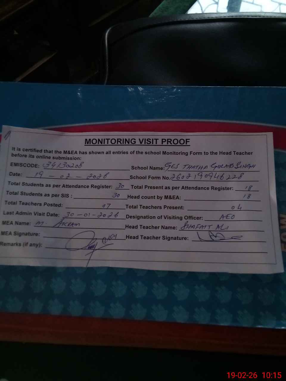 | EMIS Code: 34130208 | Name of School: GES THATTA GULAB SINGH | |||