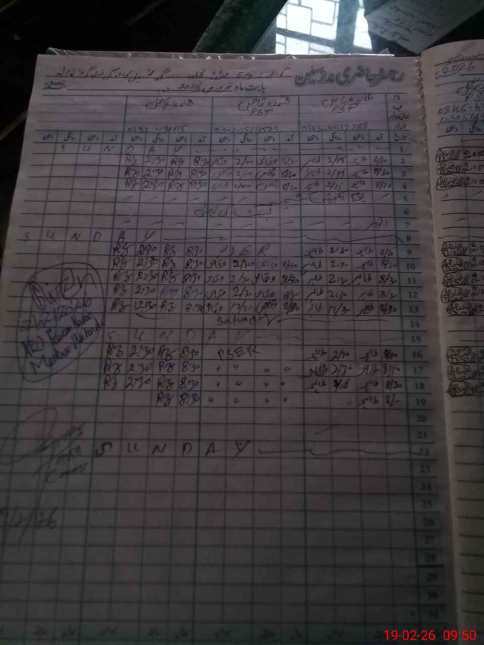 | Name: SH**** Al**** Designation: (School Headmaster's/Headmistress's) PST Phone/Cell Number: 03**** |
