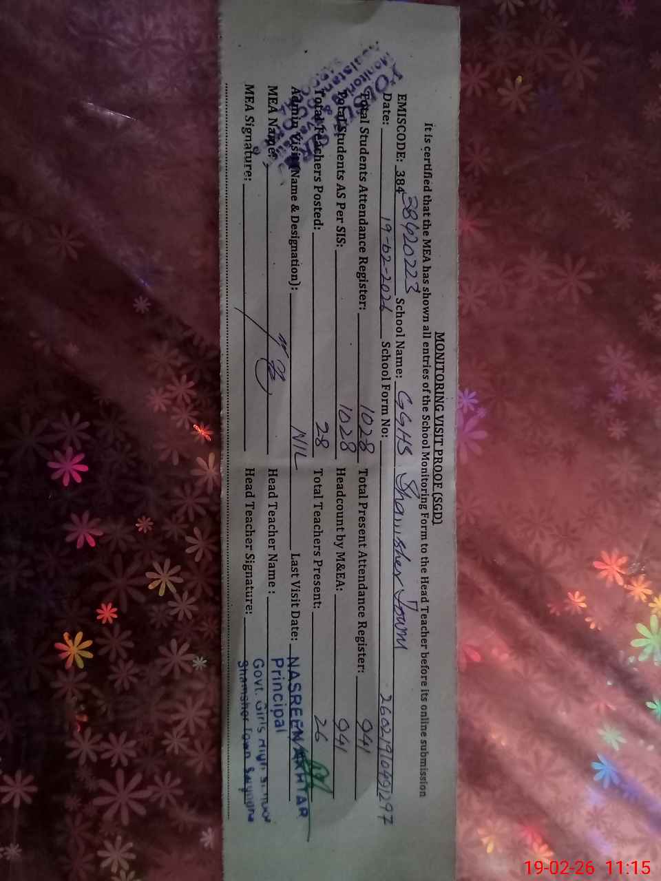 | EMIS Code: 38420223 | Name of School: GGHS SHAMSHER TOWN | |||