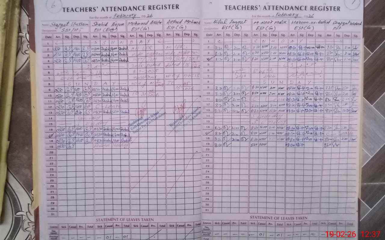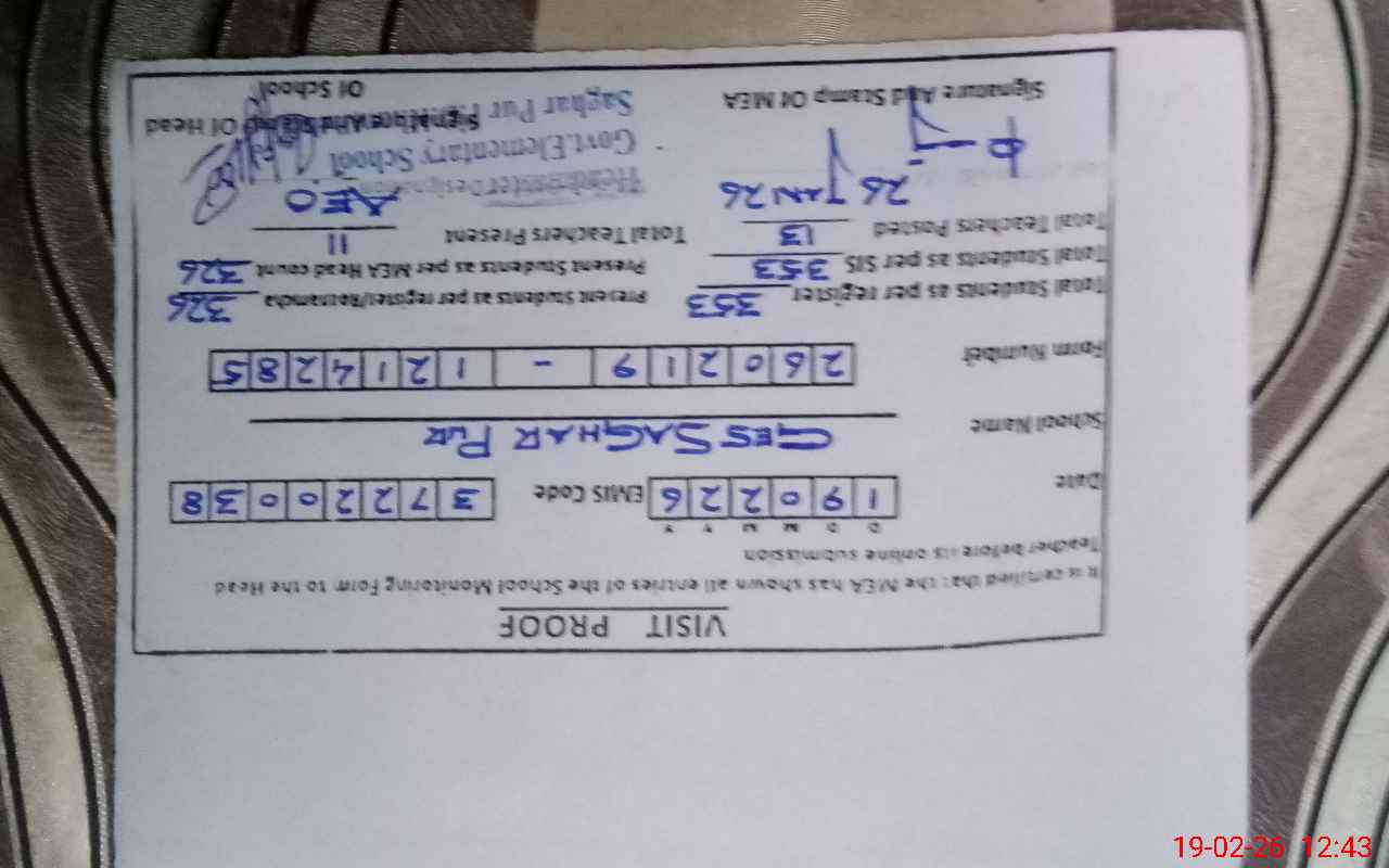 | Attendance Register | Head Teacher | MEA with School | Visit Proof |