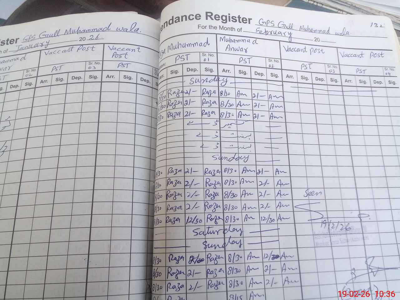 | CNIC | Full Name | Designation | R/C | Absence During Last Calender Month |