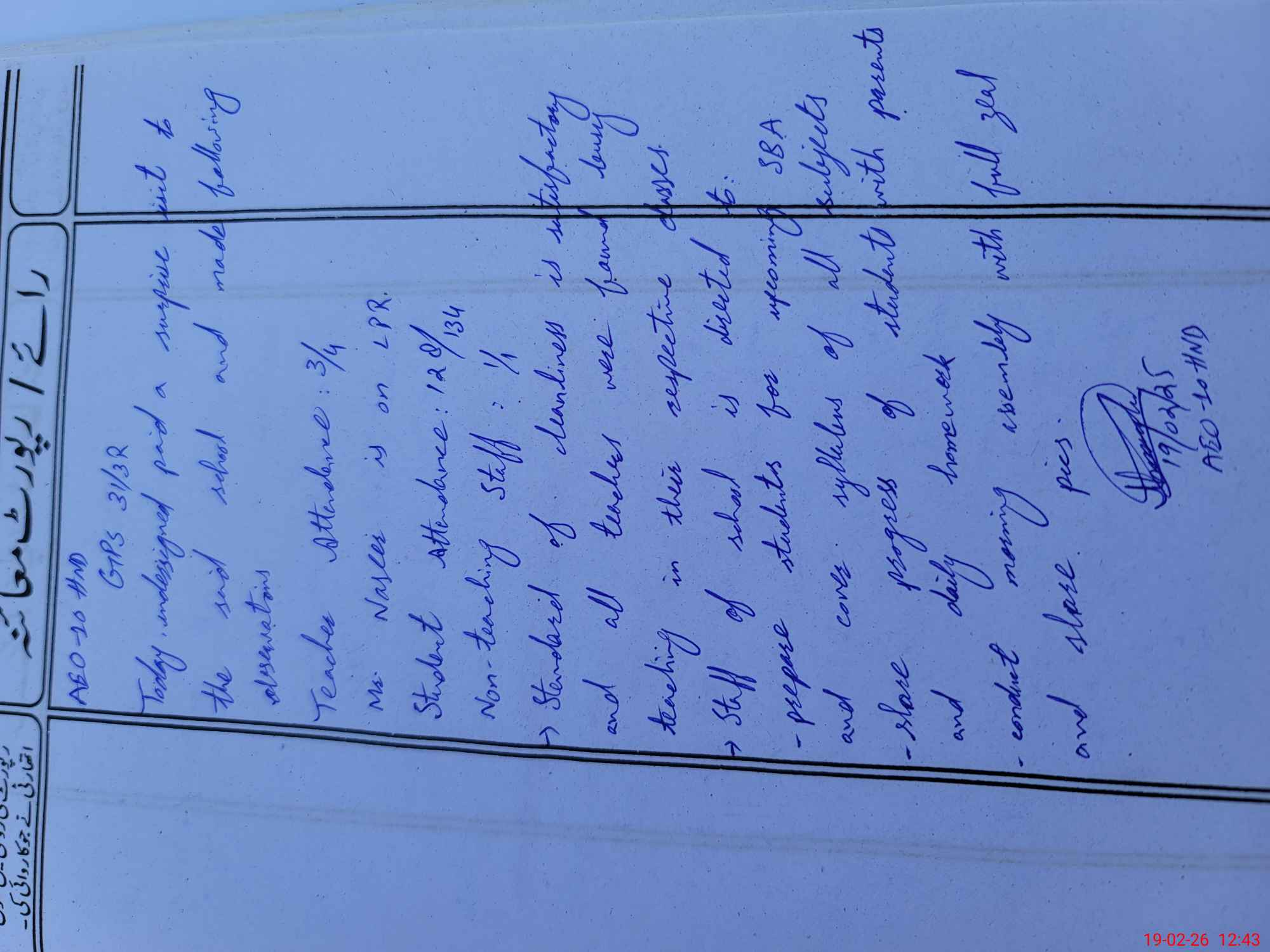 | Certified that this School was Inspected by the Undersigned MEA/DMO Today and the Information Stated Above is as Per Record. | |||||
