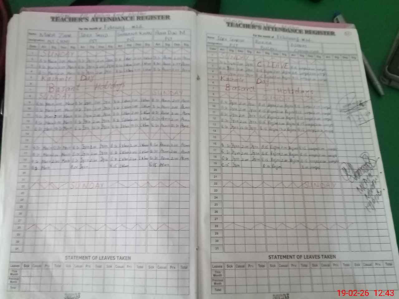 | Leave | Duty | Absent | Maternity | Medical | Ex- Pak |