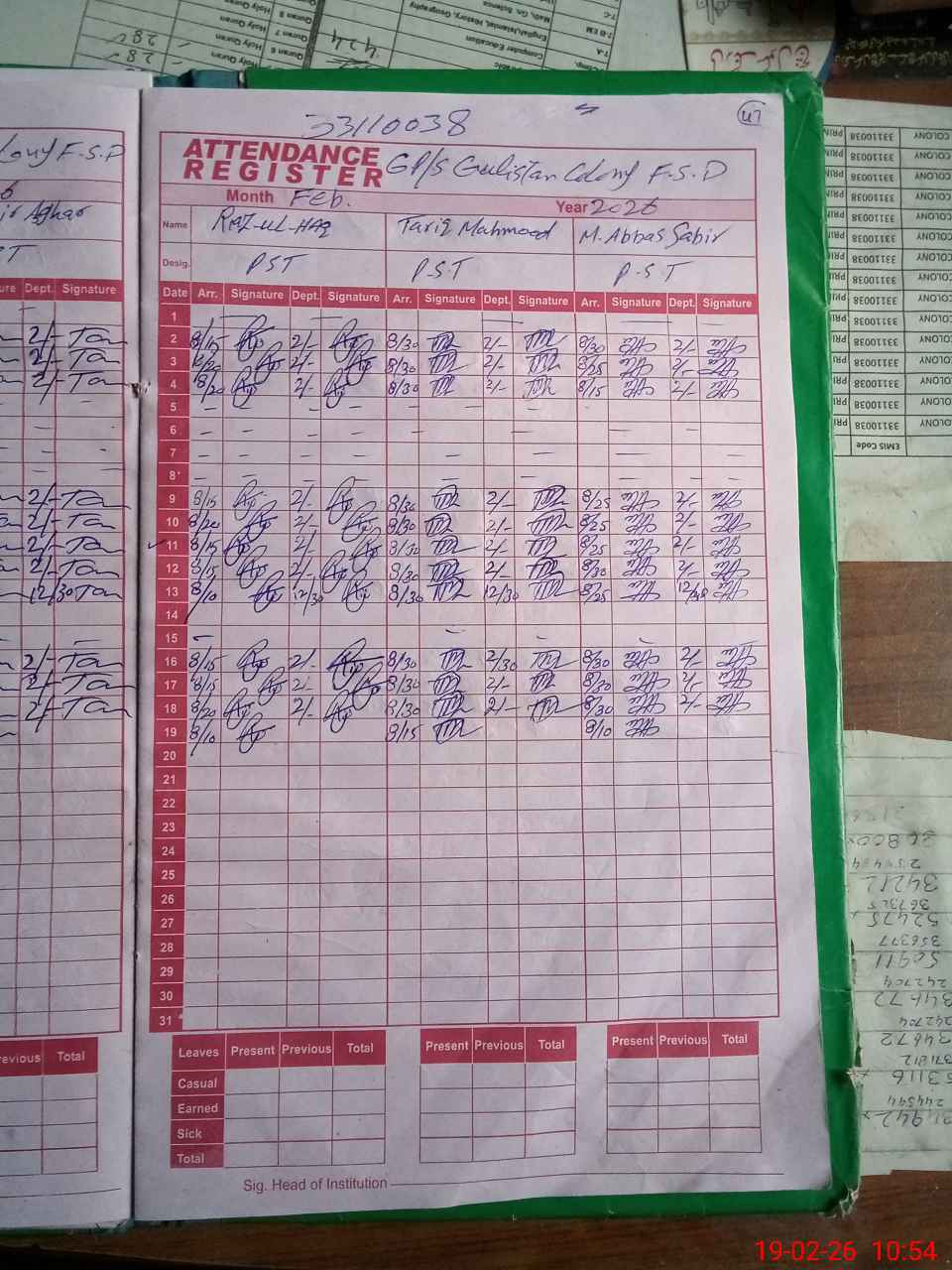 | EMIS Code: 33110038 | Name of School: GPS GULISTAN COLONY FSD | |||