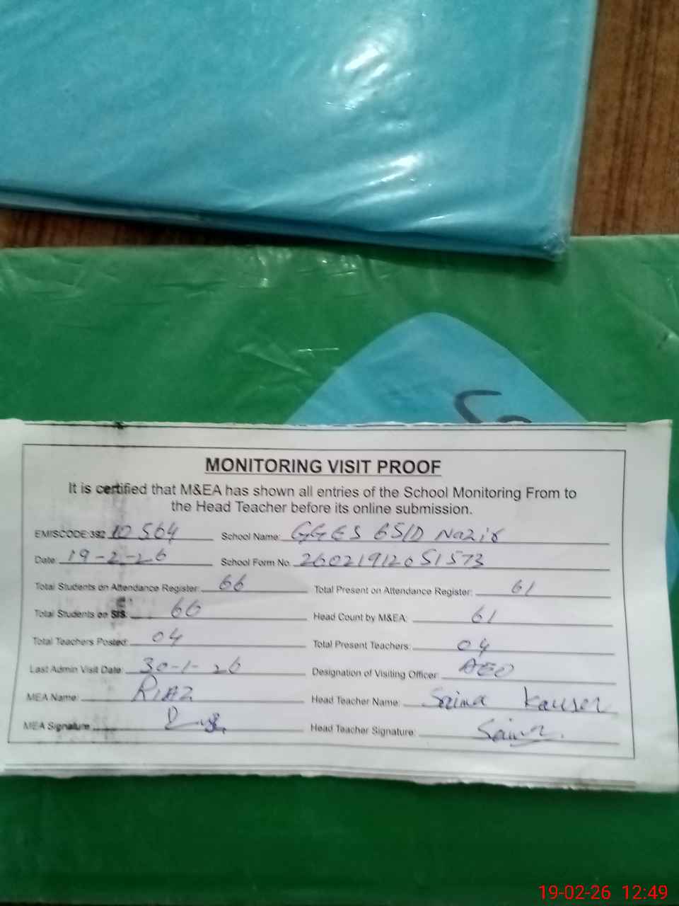 | EMIS Code: 39210564 | Name of School: GGES 65/D NAZIR | |||