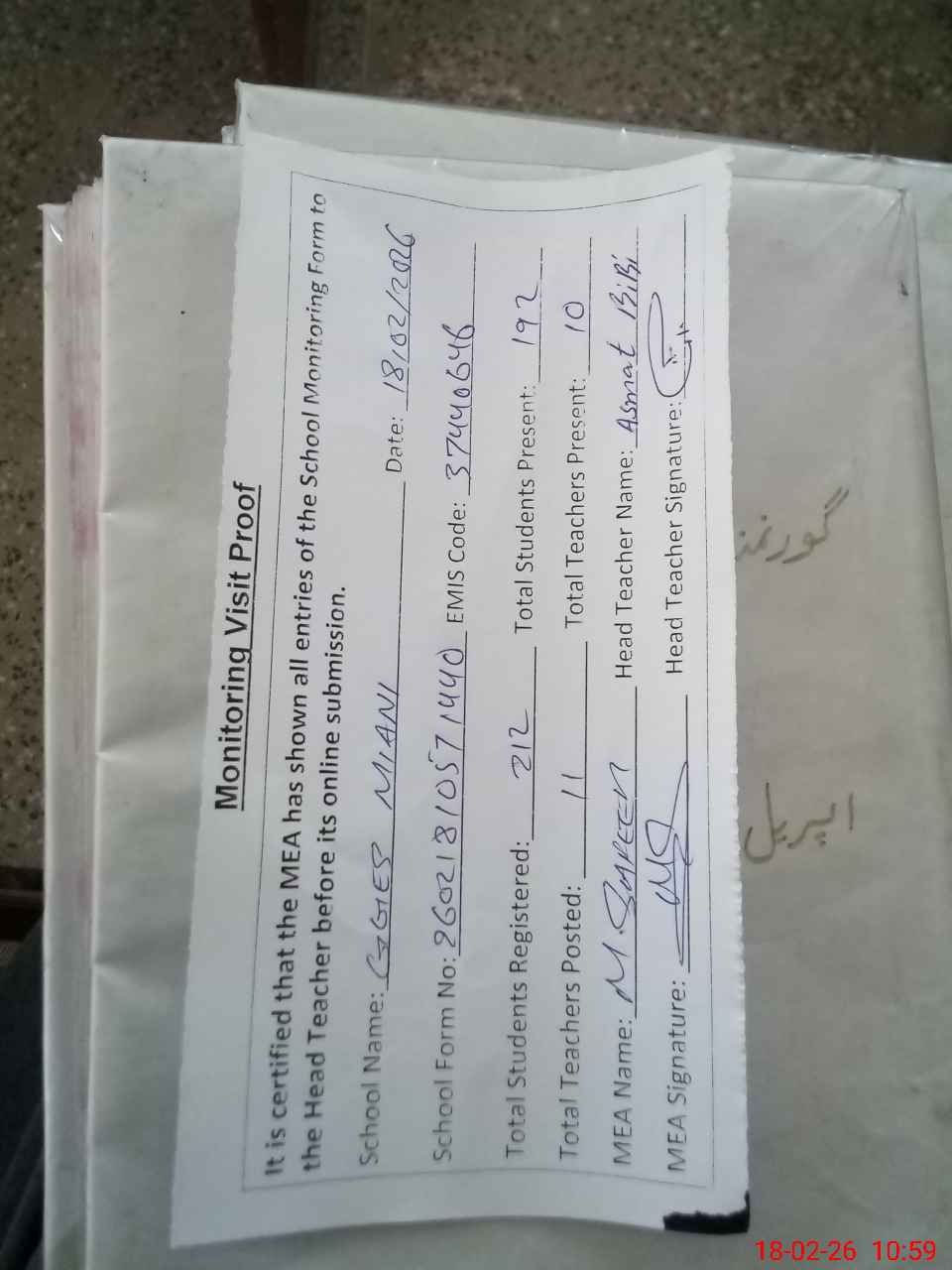 | Certified that this School was Inspected by the Undersigned MEA/DMO Today and the Information Stated Above is as Per Record. | |||||