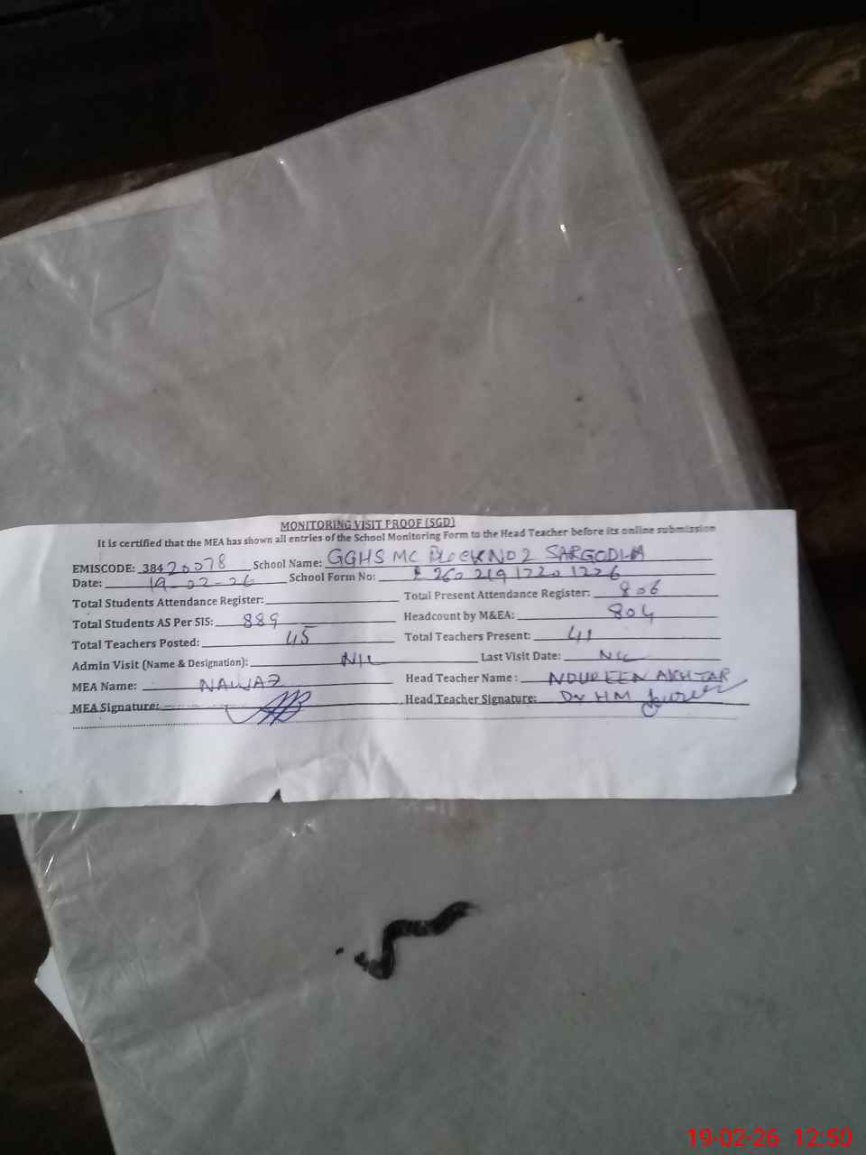 | EMIS Code: 38420078 | Name of School: GGHS MC BLOCK NO. 2 SARGODHA | |||
