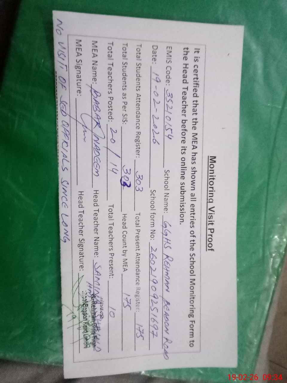 | EMIS Code: 35210154 | Name of School: GGHS REHMAN BEADON ROAD | |||