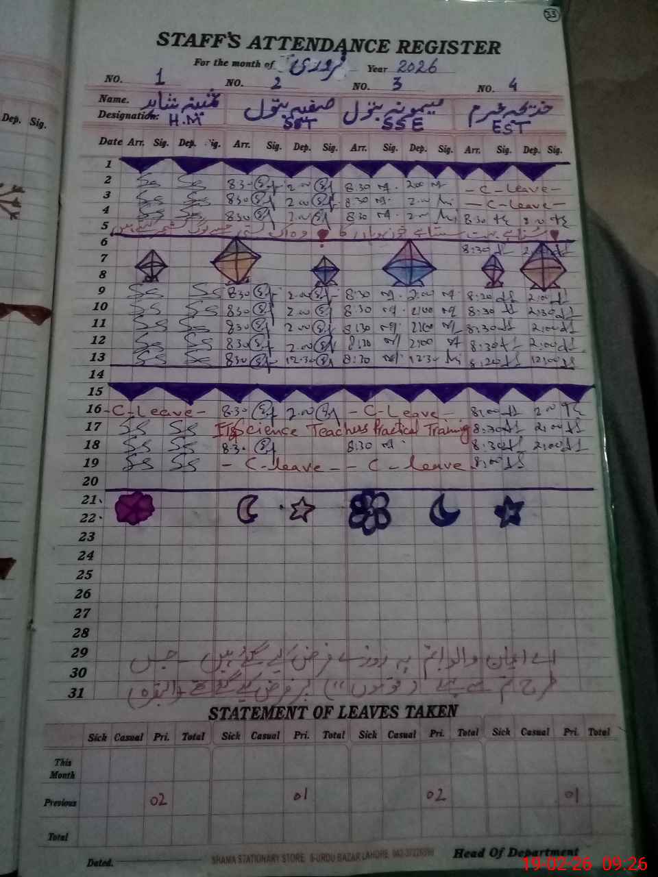 | 35**** | An**** Ik**** | PST Science/Maths | Regular | 31 | 0 | 0 | 31 | 0 | 0 | 0 | 0 | 0 | Maternity |