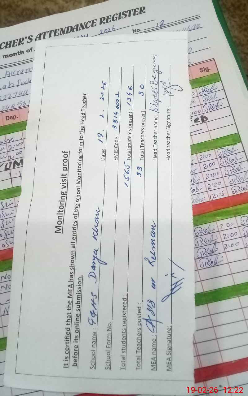 | Attendance Register | Head Teacher | MEA with School | Visit Proof |