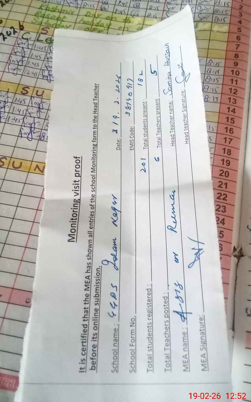 | Certified that this School was Inspected by the Undersigned MEA/DMO Today and the Information Stated Above is as Per Record. | |||||