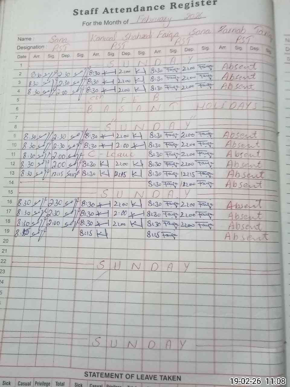 | 34**** | Za**** Ta**** | ESE Science | Contract | 0 | 0 | 0 | 0 | 0 | 0 | 0 | 0 | 0 | Absent (Un-Authorized) |