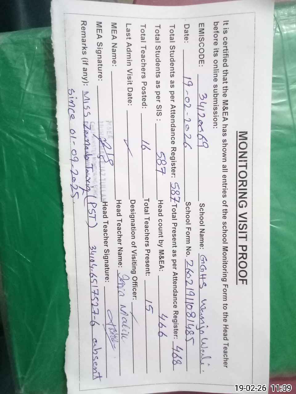 | EMIS Code: 34120069 | Name of School: GGHS WANJO WALI | |||