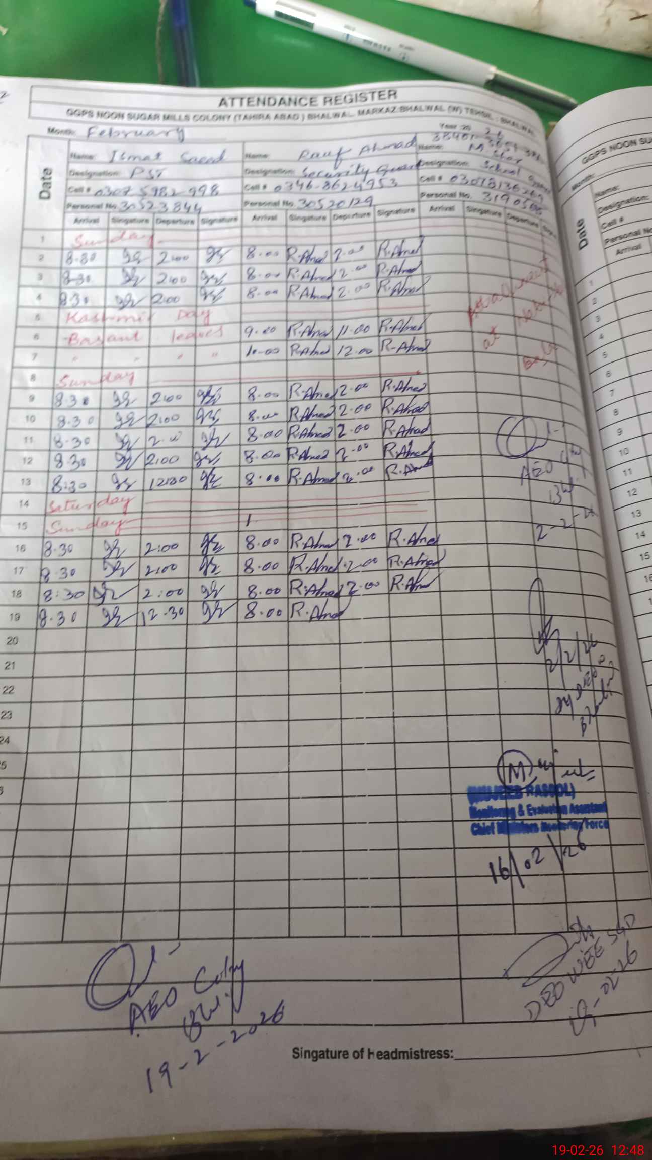 | Name: SU**** NA**** Designation: (School Headmaster's/Headmistress's) PST Phone/Cell Number: 03**** |