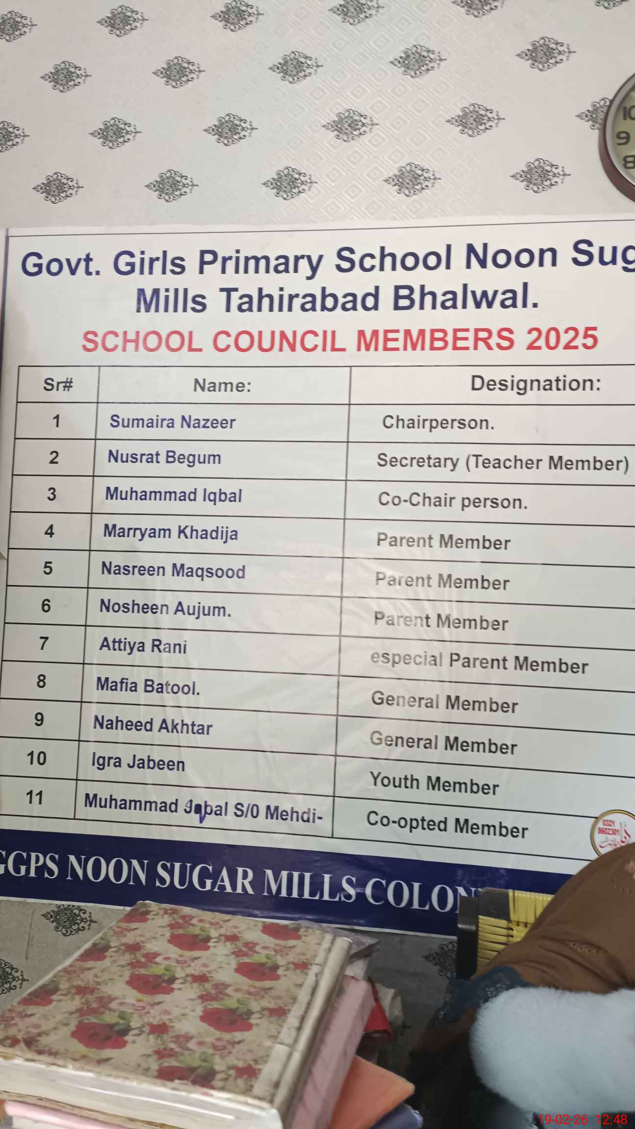 | EMIS Code: 38410484 | Name of School: GGPS NOON SUGAR MILLS COLONY BHALWAL | |||