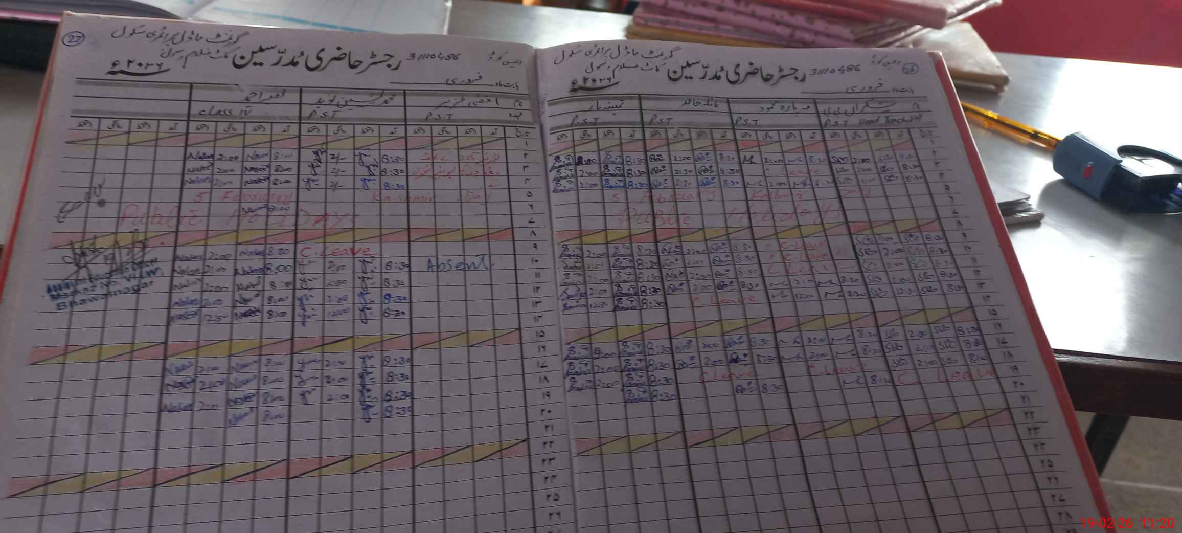 | CNIC | Full Name | Designation | R/C | Absence During Last Calender Month |