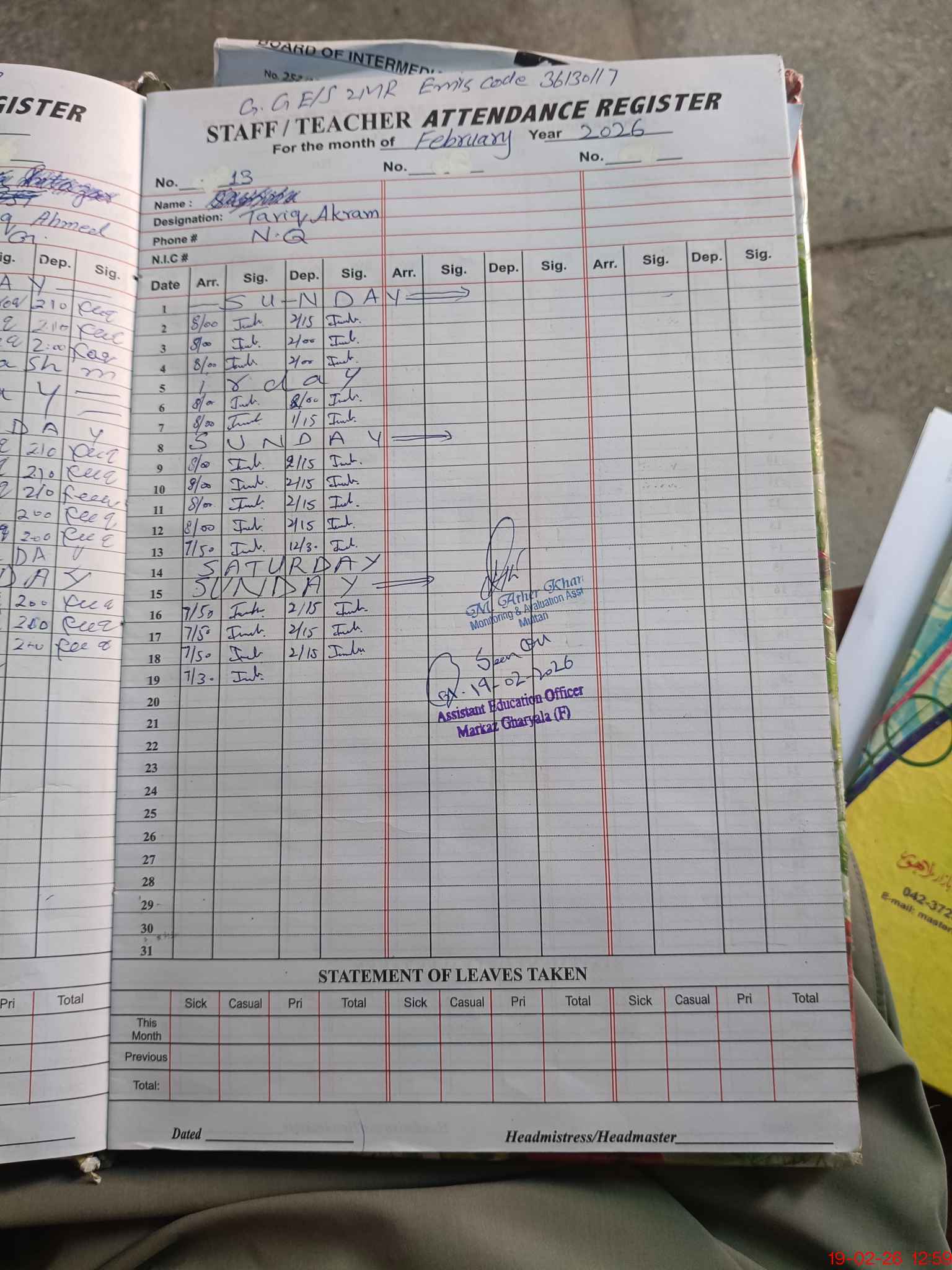 | EMIS Code: 36130117 | Name of School: GGES 2-MR P/O MAKHDOOM RASHEED | |||