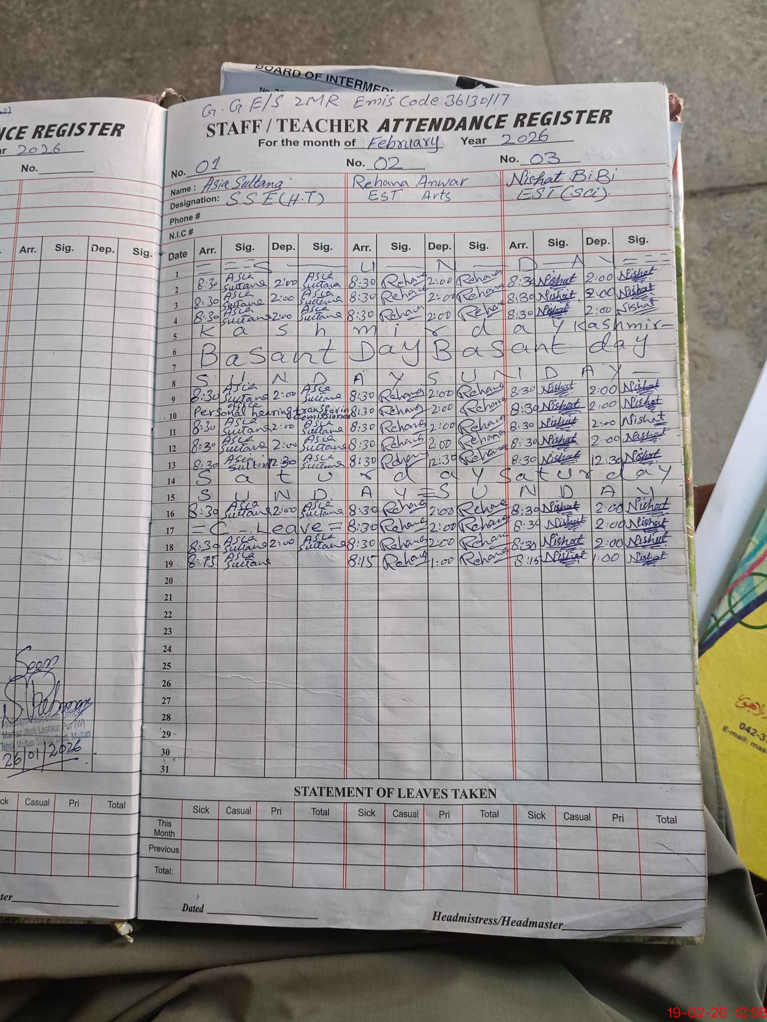 | Name: As**** Su**** Designation: (School Headmaster's/Headmistress's) SSE Arts Phone/Cell Number: 03**** |