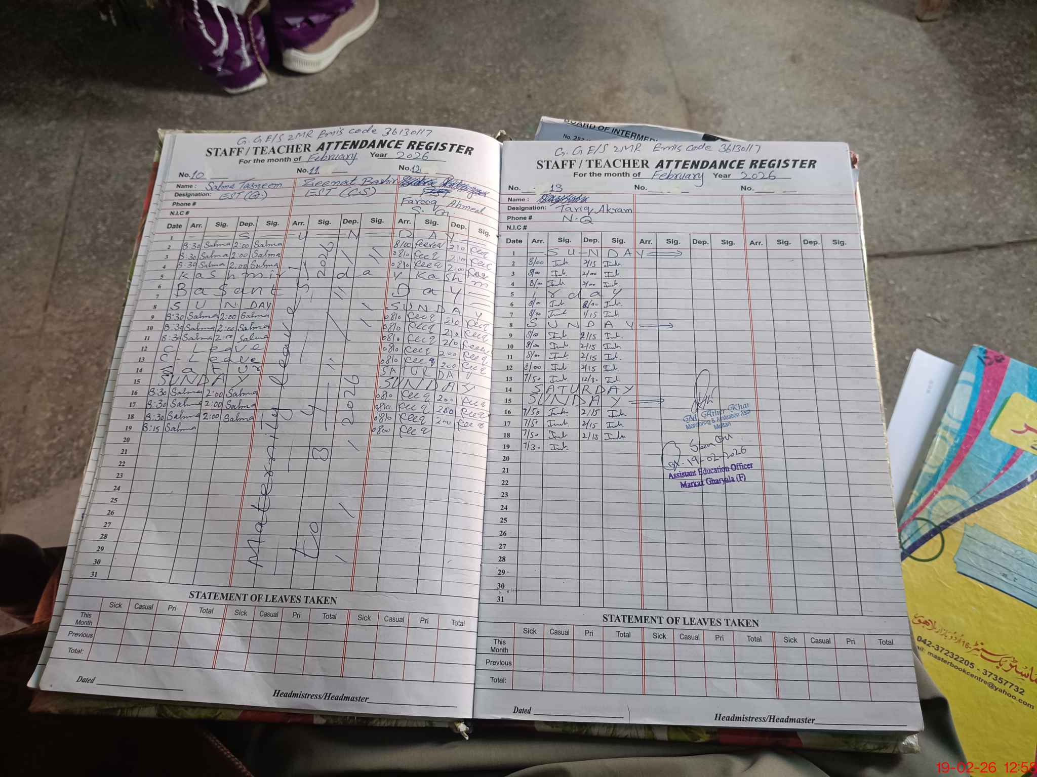 | Attendance Register | Head Teacher | MEA with School | Visit Proof |