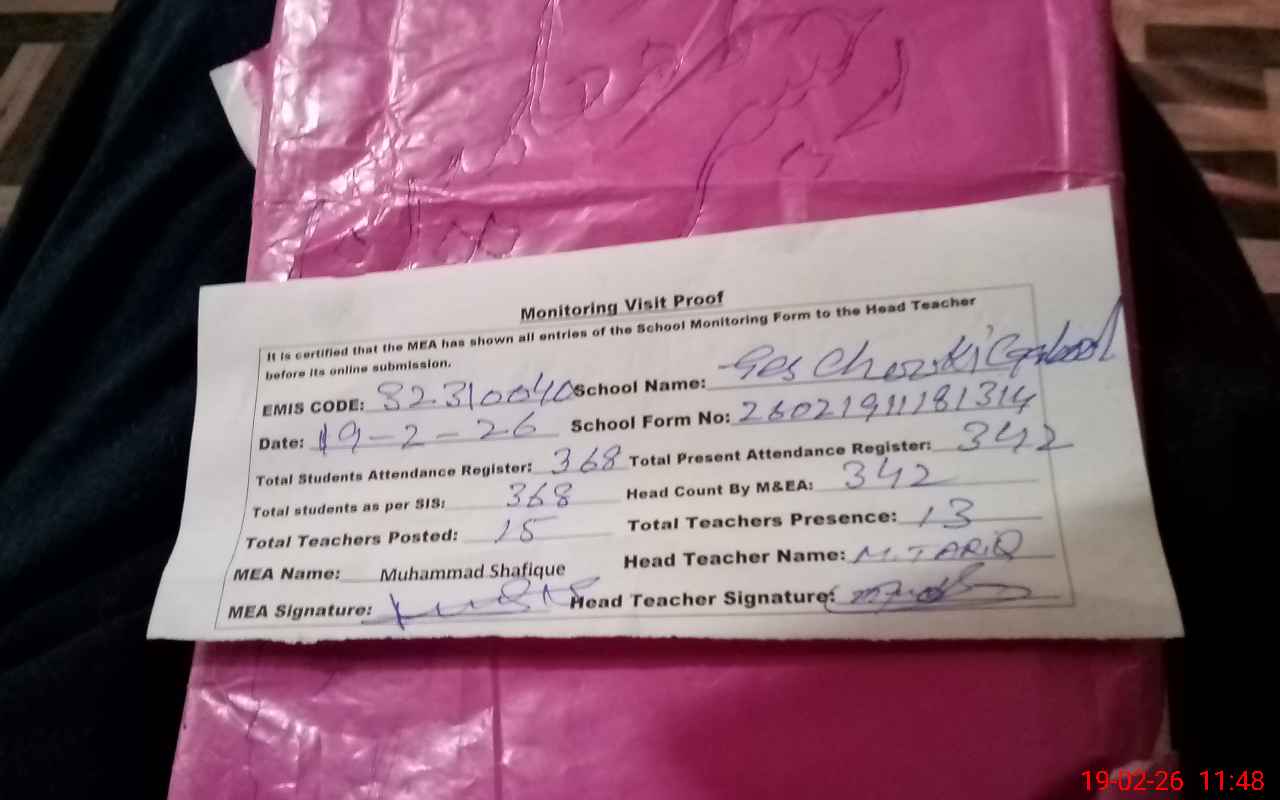 | Certified that this School was Inspected by the Undersigned MEA/DMO Today and the Information Stated Above is as Per Record. | |||||