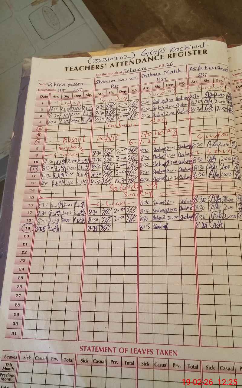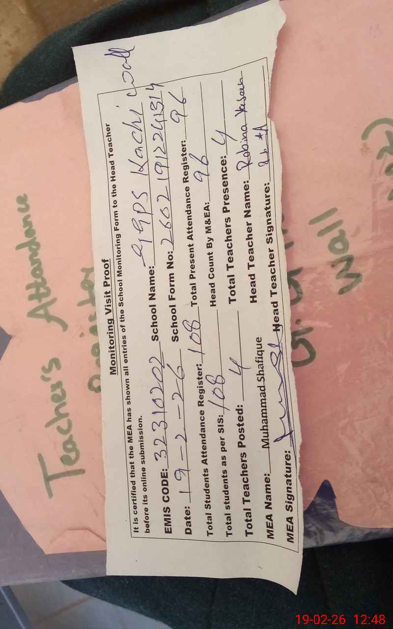 | EMIS Code: 32310202 | Name of School: GGPS KACHI WALI | |||