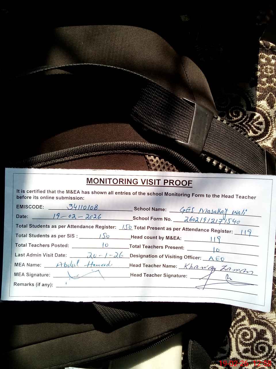 | EMIS Code: 34110108 | Name of School: GES MASAKAY WALI | |||
