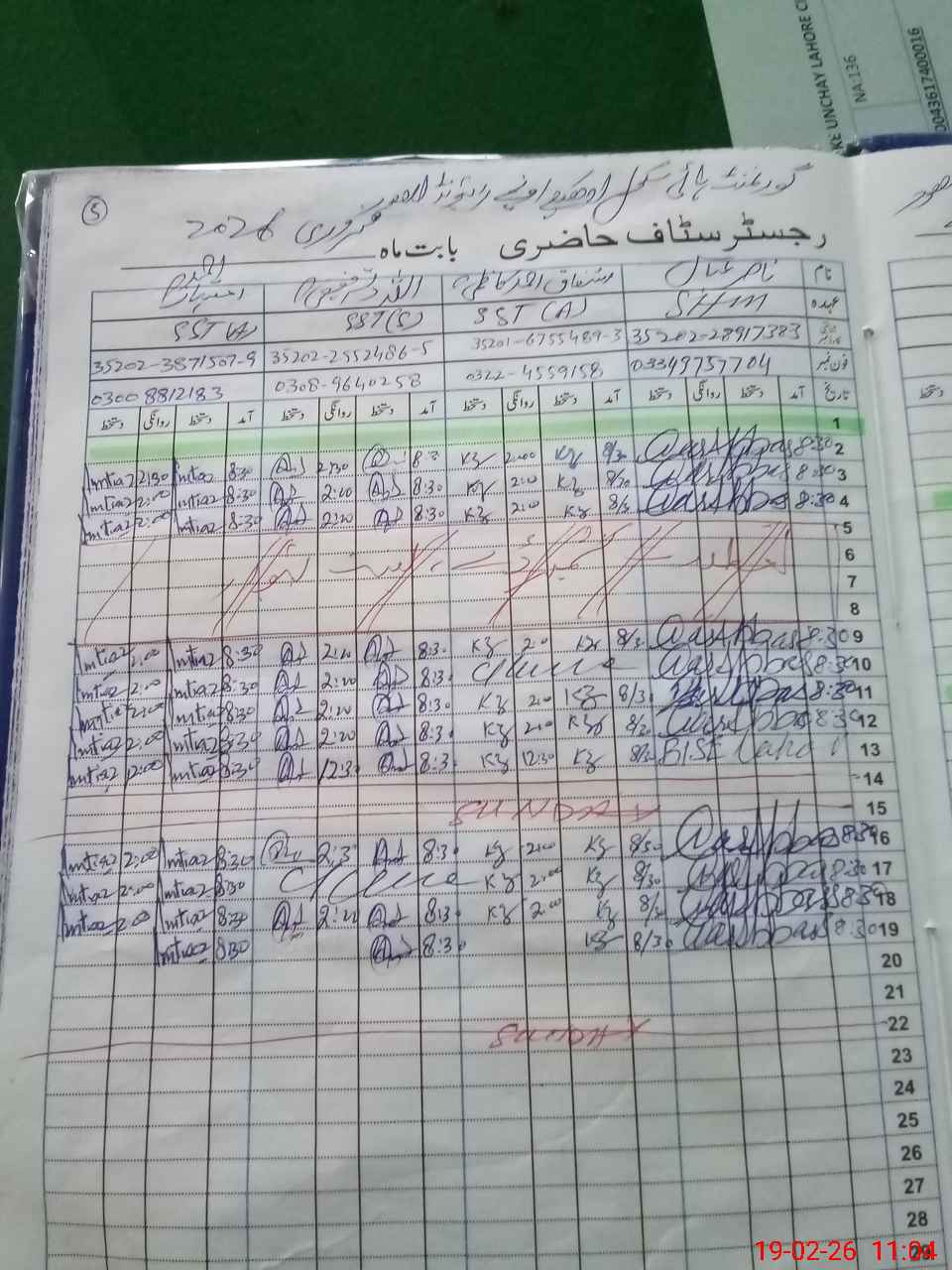 | Remarks (Use Separate Page if Required): 17 students difference in Roznamcha and head count 8 classrooms need repairing Jnr clerk Umer Jahangir has gone to attend a meeting in GHS Muslim League Empress road 35220014 | |||||