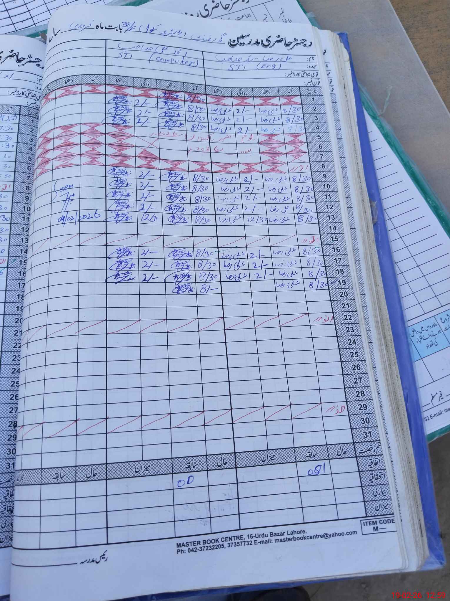 | CNIC | Full Name | Designation | R/C | Absence During Last Calender Month |
