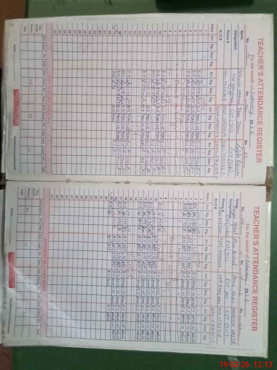 | Name: Sh**** Mu**** Designation: (School Headmaster's/Headmistress's) SST Phone/Cell Number: 03**** |